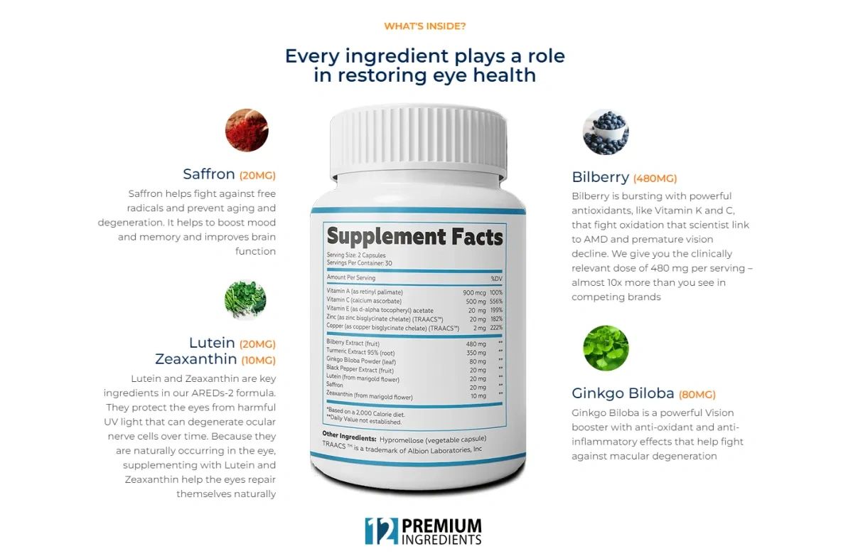 iGenics contains a precise blend of 12 science-backed nutrients, each selected for its unique role in eye health